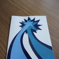 Blue & silver glitter flower, with sheet music interior and plastic gemstone centre.