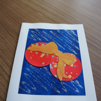 Red & green glitter flower, with sheet music interior and plastic gemstone centre.