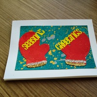 Red & green glitter flower, with sheet music interior and plastic gemstone centre.