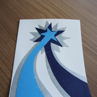 Blue & silver glitter flower, with sheet music interior and plastic gemstone centre.